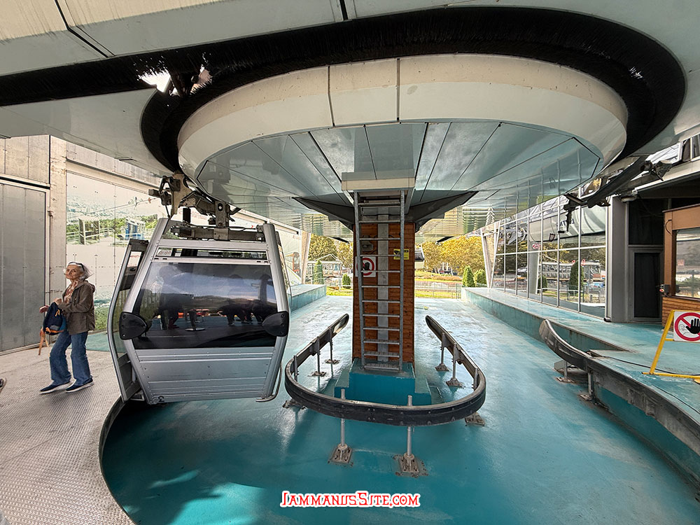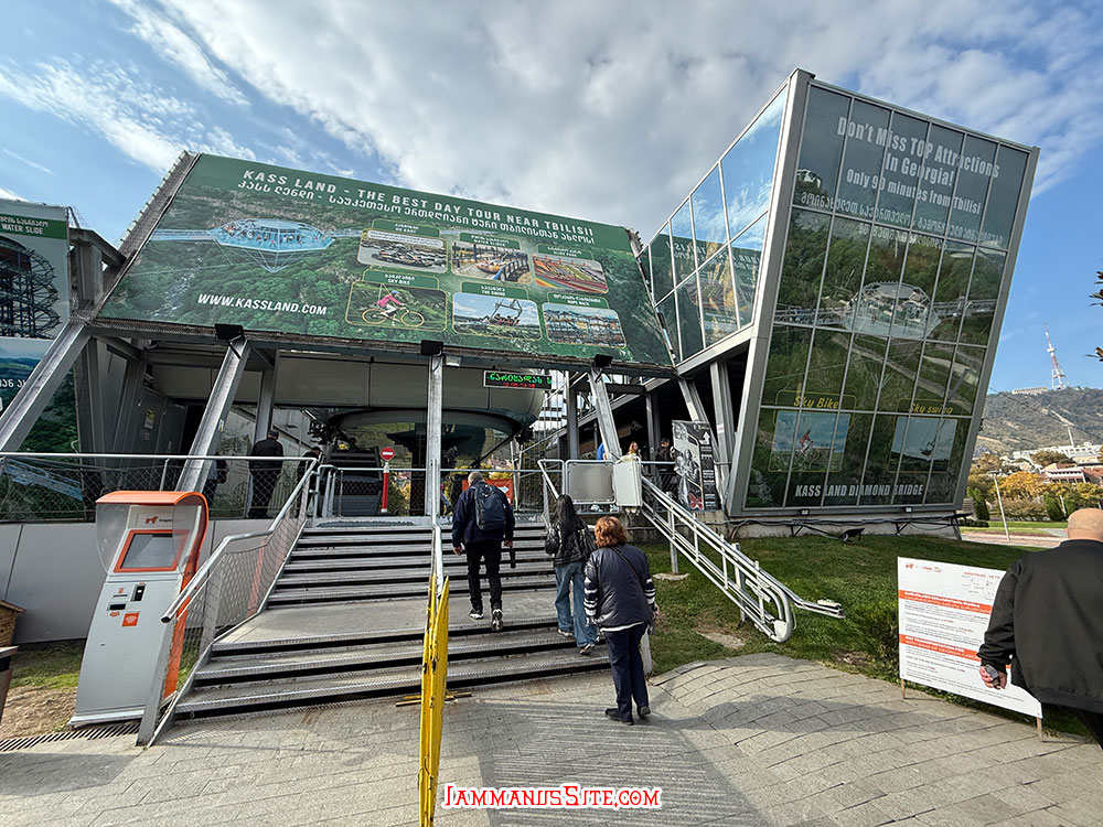 ซื้อตั๋วจากด้านนอกแล้วเข้ามาเดินวนๆๆขึ้นไปด้านบนเพื่อนั่งกระเช้า [ค่าขึ้นกระเช้าเที่ยวละ 12GEL เปิด/ปิด 12:00-21:00]