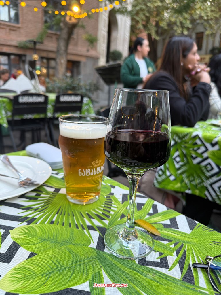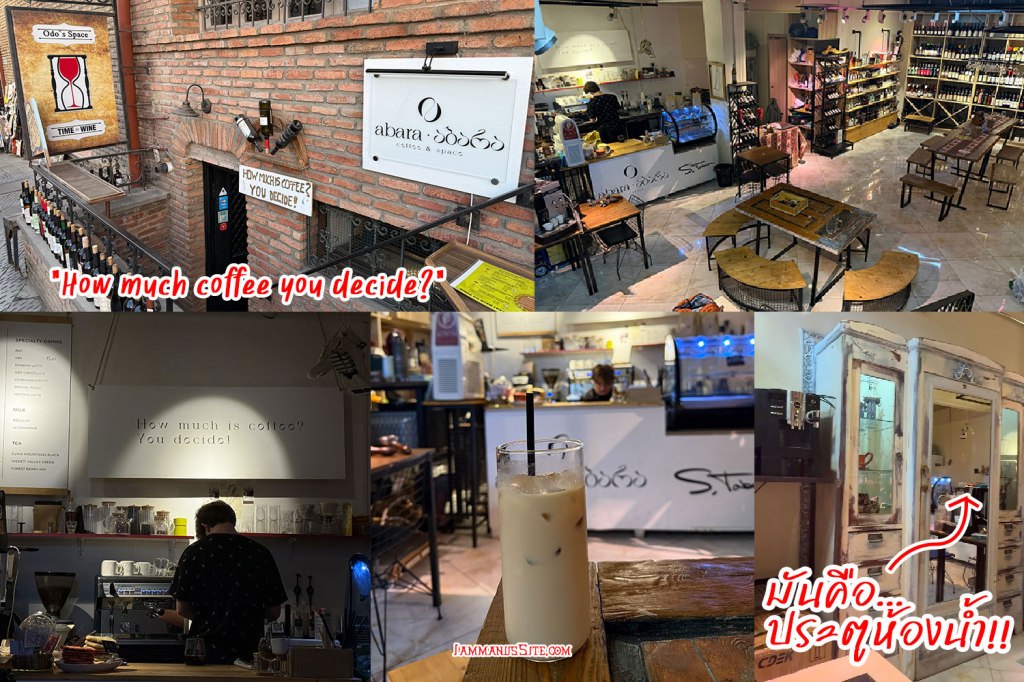ส่วนร้านกาแฟนั้น มองหามาเรื่อยๆไม่ค่อยเจอร้านกาแฟจริงจัง ส่วนมากเป็น ร้านอาหารแต่ขายกาแฟด้วย ซึ่งไม่ใช่เป้าหมายการนั่งจิบกาแฟของเรา เดินผ่านมาเห็นร้านนี้ มองดูไม่แน่ใจ เพราะมีทั้งชื่อร้าน Wine และชื่อร้าน Coffee แต่ที่แน่ๆมันมีเขียนว่า “How much coffee you decide?” มันต้องเน้นกาแฟระดับนึงละวะ เดินเข้าไปในร้าน ก็ตามนั้น คือส่วนนึงเป็น Wine Shop แต่อีกส่วนก็เป็น Coffee Bar นี่ซิที่เราต้องการ น้องบาริสต้าหน้าเหมือนแฮรี่ พอตเตอร์ พูดอังกฤษปร๋อ ลองถามเล่นๆว่ามีลาเต้เย็นมั๊ย น้องว่ามี เลยสั่งมา 2 แก้ว แต่พอมาเสิร์ฟ ตกใจเล็กน้อยคือแก้วใหญ่มาก แต่น้ำขาวมาเลย ใจคิดว่าพลาดแล้ว ลืมตัว พูดแค่ Ice Latte ซึ่งคำว่า Latte แปลว่านม เวลาไปต่างประเทศต้องสั่ง Coffee Latte ถึงจะได้กาแฟใส่นม ไม่อย่างนั้นจะได้นมมาแทน ไปคุยกับน้องแฮรี่ น้องบอกนั่นมีกาแฟแล้วนะ! คือมี Espresso shot แล้ว ห้ะ! จริงดิ ชิมแล้ว อืมมม แบบไม่ได้รสกาแฟเลย น้องเลยไปเพิ่ม shot ให้ ดีขึ้นเยอะ ที่พีคคือพอจะจ่ายเงินน้องก็บอก เท่าไหร่ก็ได้จ้ะ ตามที่เขียนไว้เลย “How much coffee you decide?” เลยคุยกันยาวหน่อยว่า ราคากาแฟที่จอร์เจียมันประมาณเท่าไหร่ เพิ่งเป็น Coffee Break มื้อแรก ไม่รู้เลย ได้ความว่า มีตั้งแต่ 6GEL ขึ้นไปถึง 10 กว่า ตามคุณภาพแล้วไอ้เราอยากให้แค่ 5GEL เหอะ แต่น้องน่ารัก เพิ่ม shot ให้อย่างไม่อิดออดด้วย เลยให้ไปแก้วละ 10GEL จ่ายเท่าไหร่ก็ได้เหรอเนี่ย