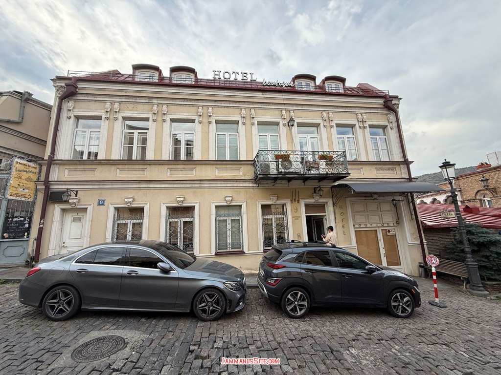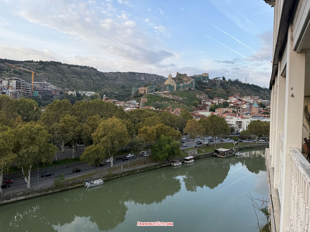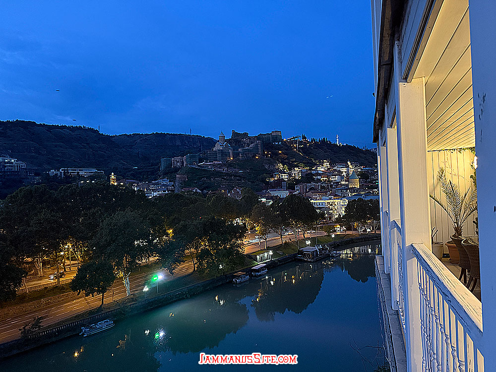 ที่พักอยู่ริมหน้าผาติดแม่น้ำคูรา เลือกโรงแรมนี้จากทำเลที่อยู่ตรงข้ามกับเมืองเก่า ใกล้จุดขึ้นกระเช้า และแค่เดินข้ามสะพานก็ถึงย่านเมืองเก่าแล้ว ตั้งใจมาถ่ายรูปภูเขากับ Mother of Georgia ยามเช้าหรือยามเย็น แต่พอมาเห็นจริงมันจะเอียงมาหน่อยทำให้ถ่ายรูป Mother of Georgia ไม่ได้อย่างที่คาด
