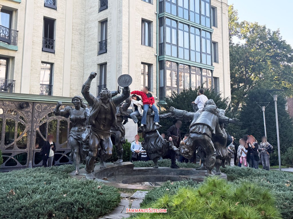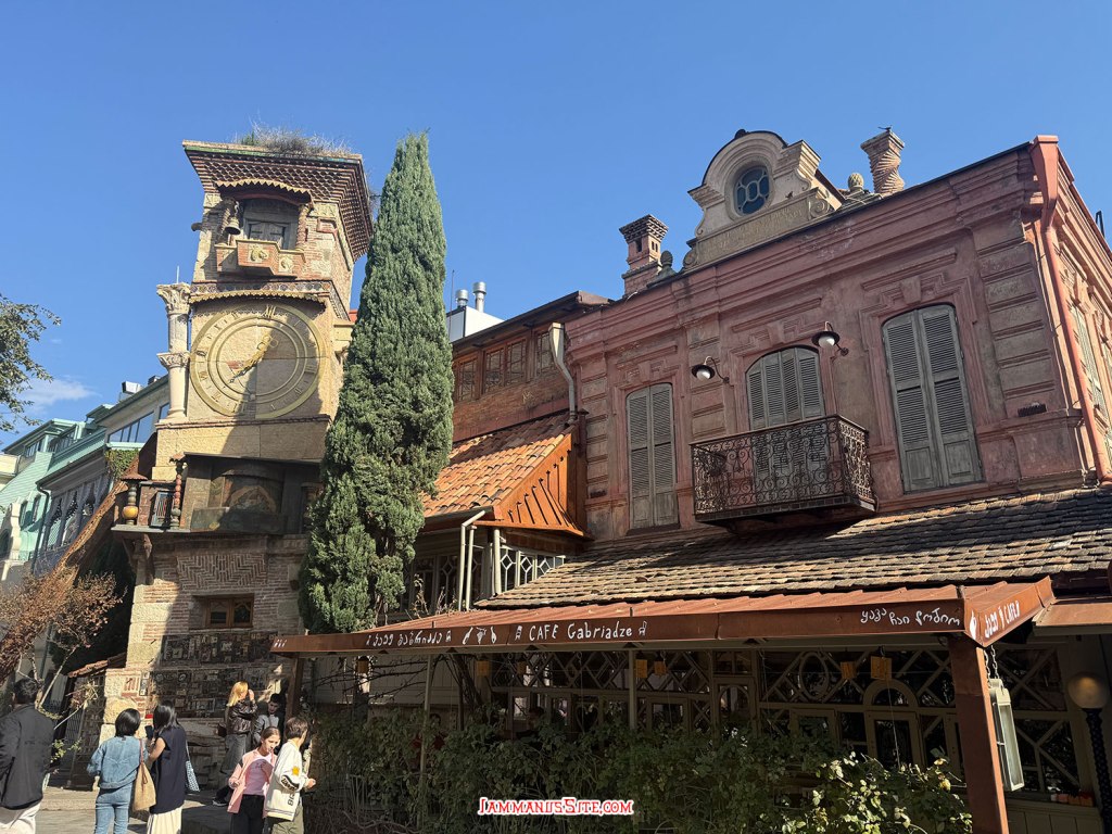 รถจอดส่งตรงริมถนน Nikoloz Baratashvili St. เจอรูปปั้น Berikaoba ก่อนเลย แล้วเดินเข้าถนนเล็กๆ ที่มีรูปปั้นเรียงรายเข้าไป ก็จะเจอ Clock Tower