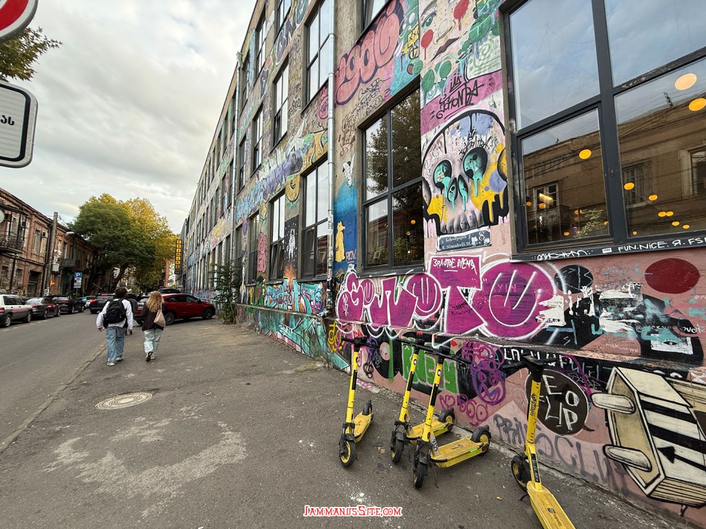 ตามแผนคือจะแวะซื้อกาแฟ แล้วเดินต่อไปเรื่อยๆ เจอสถานีรถไฟ Rustaveli Station ก็จะลองใช้บริการนั่งไปลงสถานี Marjanishvilli Station เพื่อเดินเล่นย่าน Fabrika ถ้าบรรยากาศถูกใจก็จะนั่งจิบอะไรเพลินๆท่ามกลางเหล่าวันรุ่นเสียหน่อย เพราะว่าผิดแผนที่วางไว้ ก็เลยขี้เกียจเดินกลับไปสถานีรถไฟอีกรอบ ก็เลยเรียกรถ Bolt ไป Fabrika เลย มาถึงเย็นไปหน่อย แสงเลยไม่สดใส