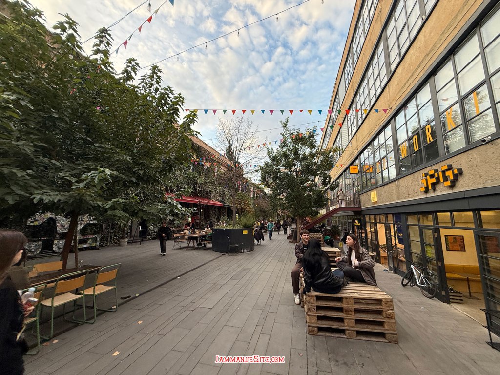 เดินถ่ายรูปเล่นสักพัก ก็ไปเจอย่าน Hang out ของวัยรุ่นจนได้ (เดินทะลุตัวอาคารไปด้านหลังก็ได้ หรือเดินด้านนอกสุดตึกไปเข้าประตูเหล็กอ้อมไปก็ได้)