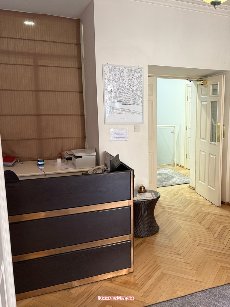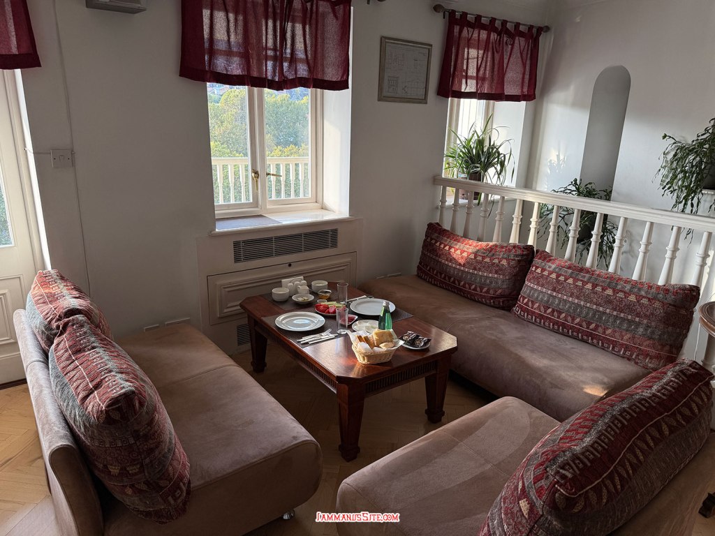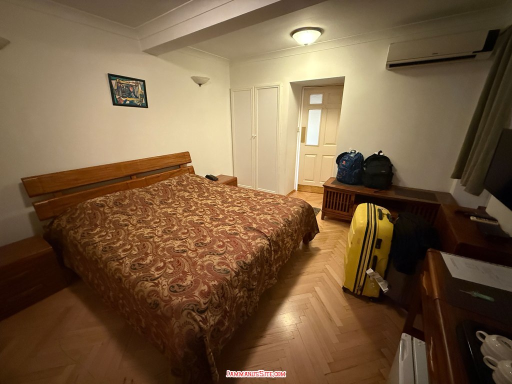 ตัวอาคารเป็นอาคารเก่า ไม่มีลิฟต์ ต้องเอากระเป๋าใหญ่ขึ้นลงบันได โชคดีเราได้ชั้นล่างจากโถงต้อนรับไปชั้นเดียว ระเบียงเป็นระเบียงรวมไม่ใช่ระเบียงส่วนตัว แต่ชั้นเรามีห้องเดียว ขนาดห้องกว้างพอสมควร ที่นอนใช้ได้ไม่แข็งไม่นิ่ม ห้องน้ำกว้าง เก่าแต่สะอาด เสียที่ไม่มีผ้าเช็ดเท้า ไม่มีไดร์เป่าผมแต่ไปขอยืมได้ มีเครื่องอาบน้ำให้พอสมควร มีแอร์และฮีทเตอร์ มีทีวี มีตู้เย็น(ที่ไม่มีอะไรเลย) wifi ใช้ได้ดี ปลั๊กไฟเป็นยุคโซเวียต ต้องใช้หัวแปลง