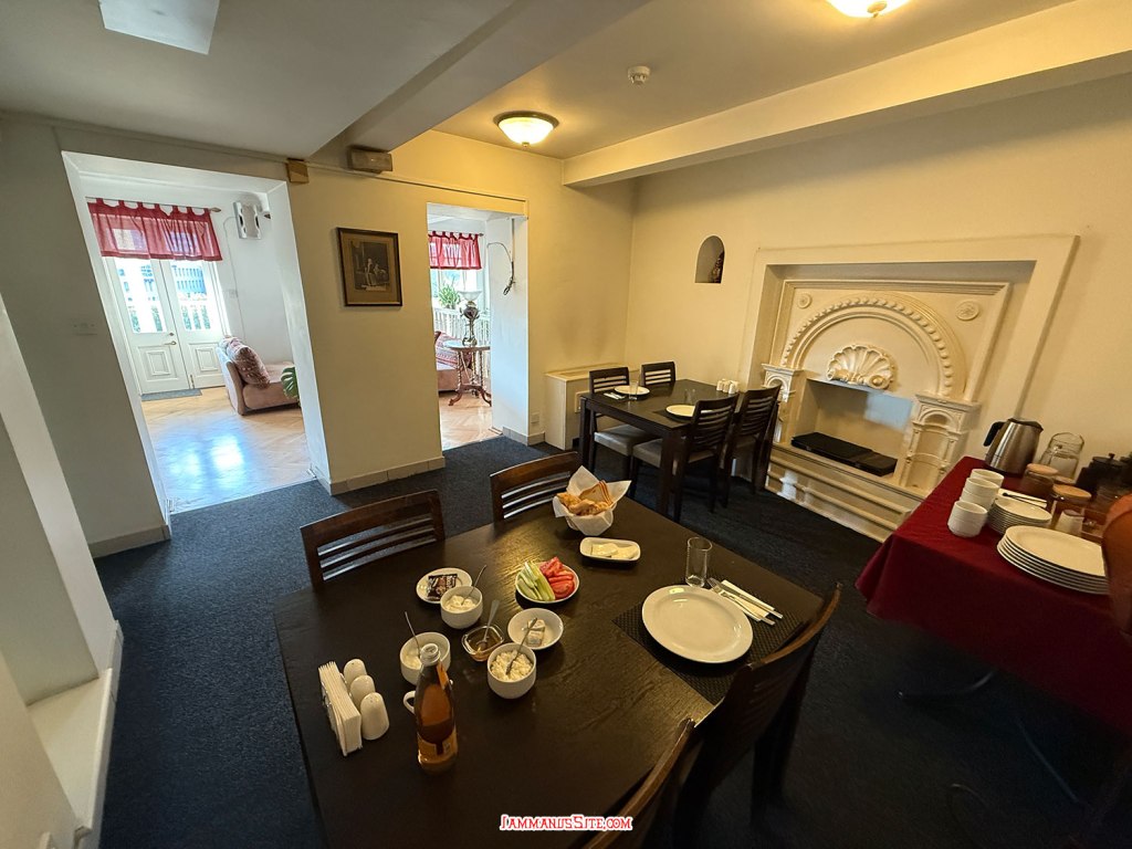ห้องอื่นอยู่ชั้นบน ต้องเดินลงมากินอาหารเช้าตรงนี้ เขาจัดโต๊ะให้นั่ง แต่ห้องเราอยู่ชั้นนี้ จัดให้นั่งโซฟาหน้าห้องเลย VIP ไปอีก