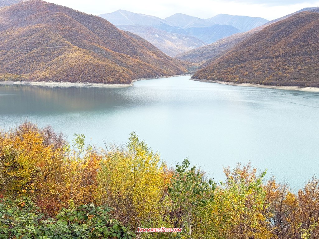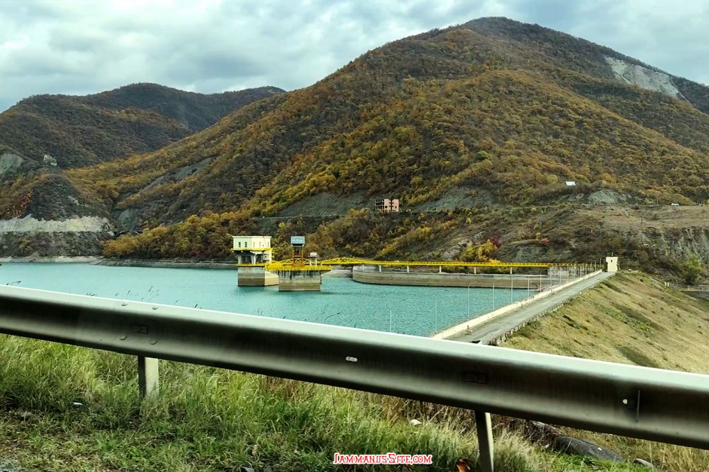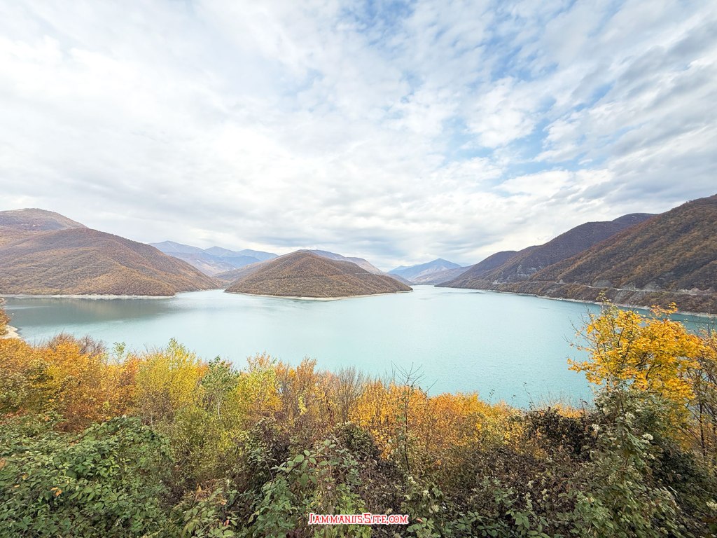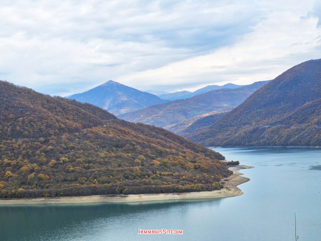 Zhinvali Dam เป็นเขื่อนผลิตไฟฟ้าพลังน้ำ สร้างขวางแม่น้ำอารากวี (Aragvi River) เกิดเป็นอ่างเก็บน้ำสีฟ้าสวย (ถ้ามีแดดอ่ะนะ)