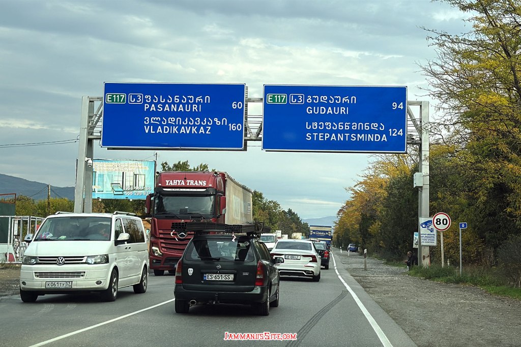 ทางหลวงยุโรปหมายเลข 117 (European Road 117, E117) – ถนนสายทหารจอร์เจีย (Georgian Military Road) – เป็นถนนเส้นหลักที่วิ่งผ่านเทือกเขาคอเคซัสไปถึงเมือง Vladikavkaz ประเทศรัสเซียได้ นับเป็นเส้นทางประวัติศาสตร์ที่มีความสำคัญทั้งในด้านการค้าและการทหาร ทำให้มีรถขนสินค้าค่อนข้างเยอะ ทางส่วนมากเป็นทางเลาะเลียบเขาและเป็นทาง 2 เลนสวนกัน ยิ่งต้องใช้สมาธิในการขับ เพราะรถใหญ่ก็เยอะ แซงยาก แถมรถทั่วไปก็แซงกันแบบเมามันมาก คือแซงแหลก เส้นทึบก็จะแซง ขึ้นเขาก็จะแซง บางทีเราขับออกมาจะแซงแล้ว คันหลังก็แซงออกมาด้วยก็มี ไม่แน่ใจว่ารถคนจอร์เจียหรือรถนักท่องเที่ยว แต่ขับกันค่อนข้างน่ากลัวต้องระวังดีๆ