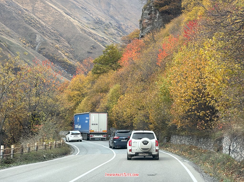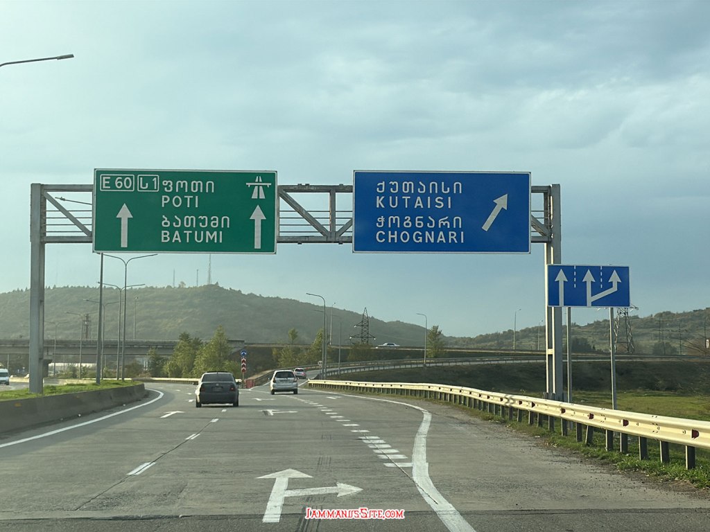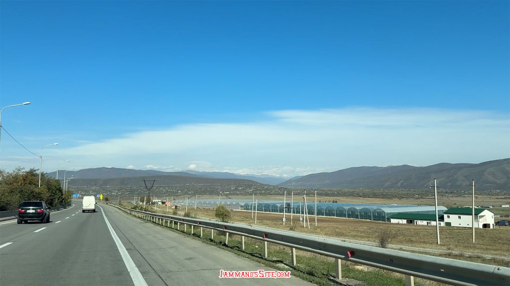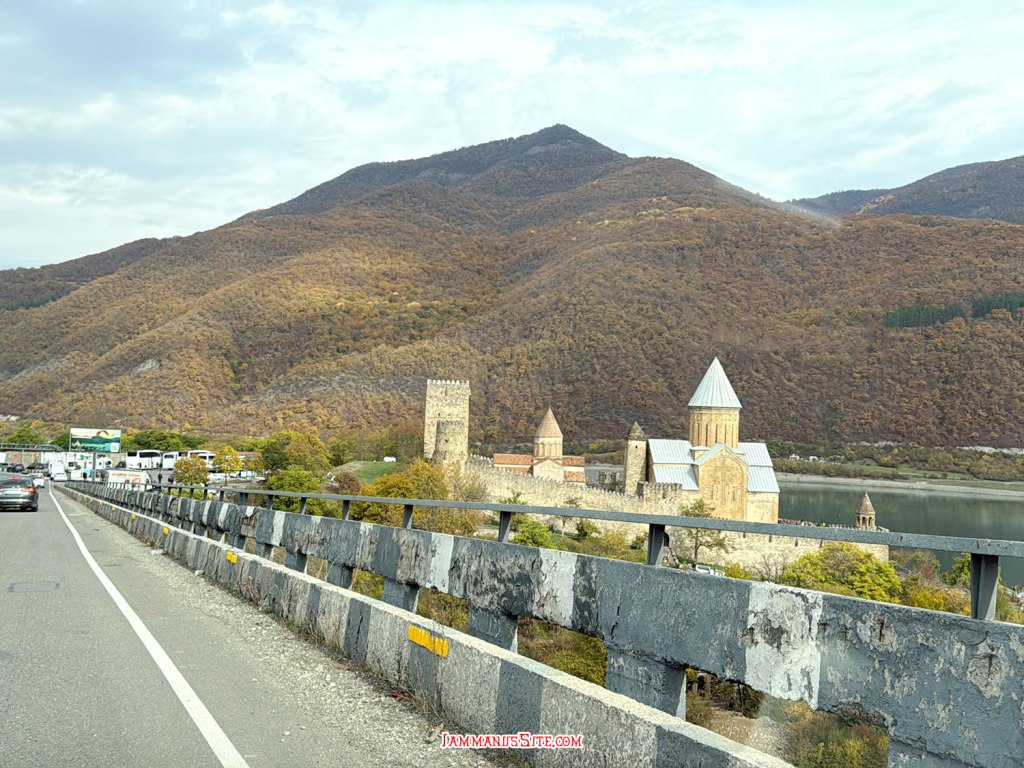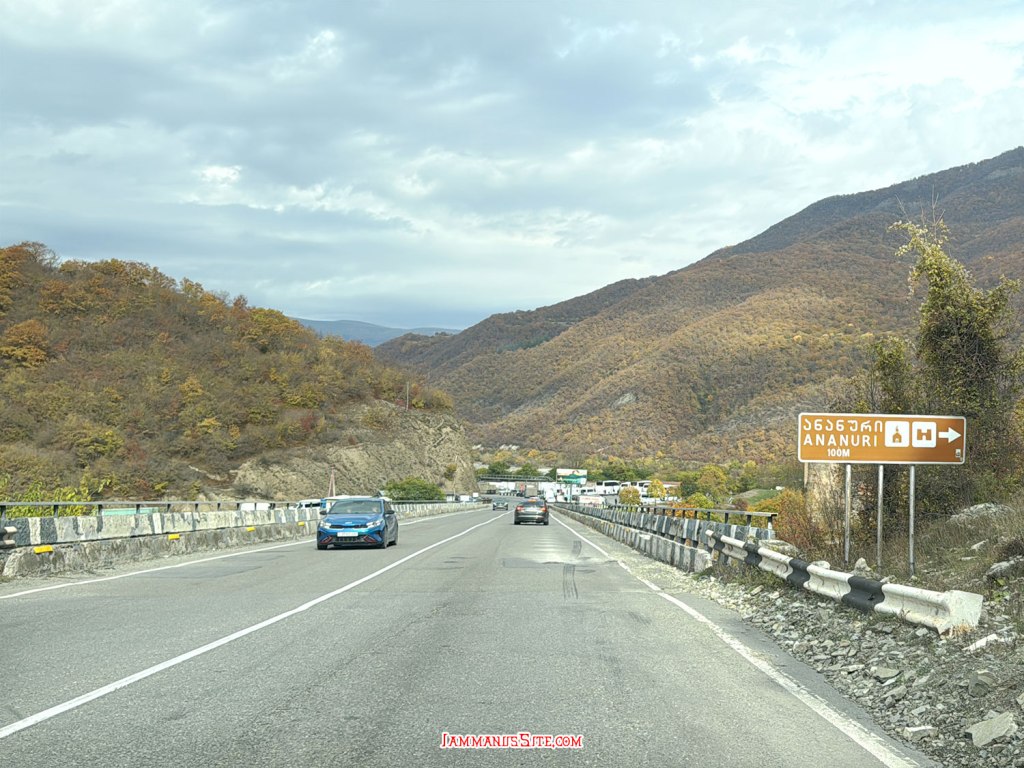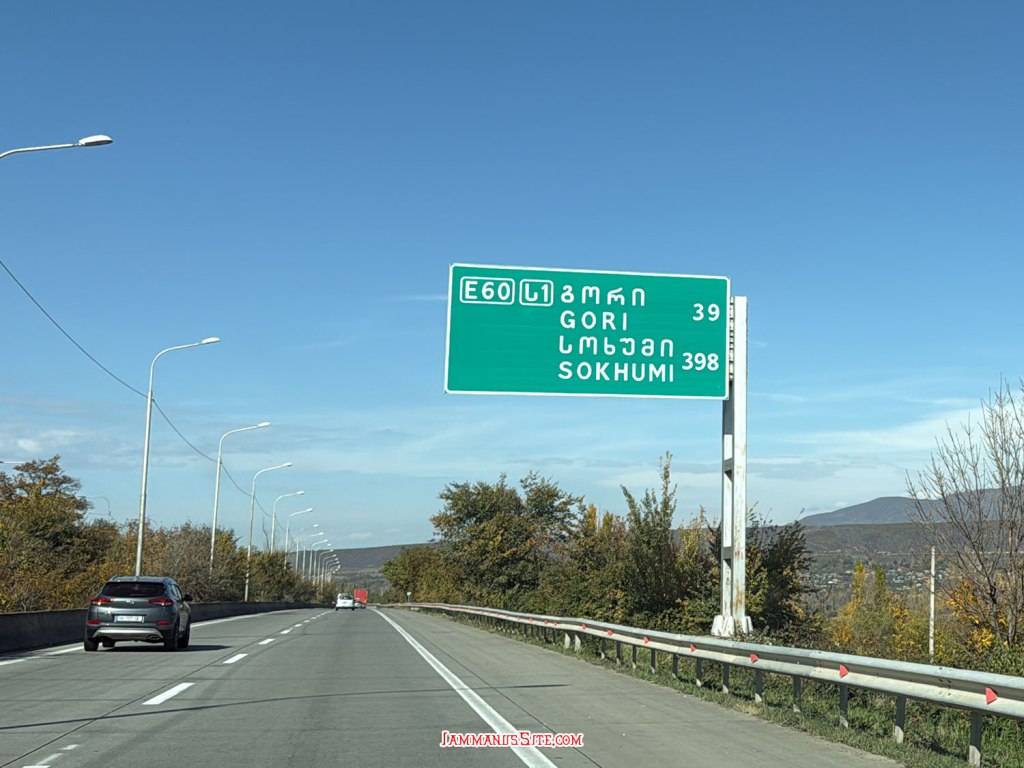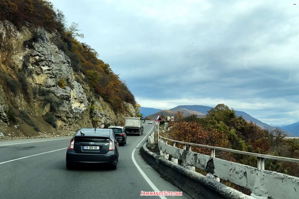 จาก Tbilisi ขับเลาะเลียบแม่น้ำคูราออกจากเมืองตรงไปทาง Mtskheta เข้าถนน E60 แล้วต่อไป E117 ทางดีใช้ได้ แต่รถขับกันค่อนข้างเร็ว กับวันแรกของ Road Trip และต้องขับรถพวงมาลัยซ้าย ก็ต้องใช้เวลาปรับตัวสักพักกว่าจะชิน