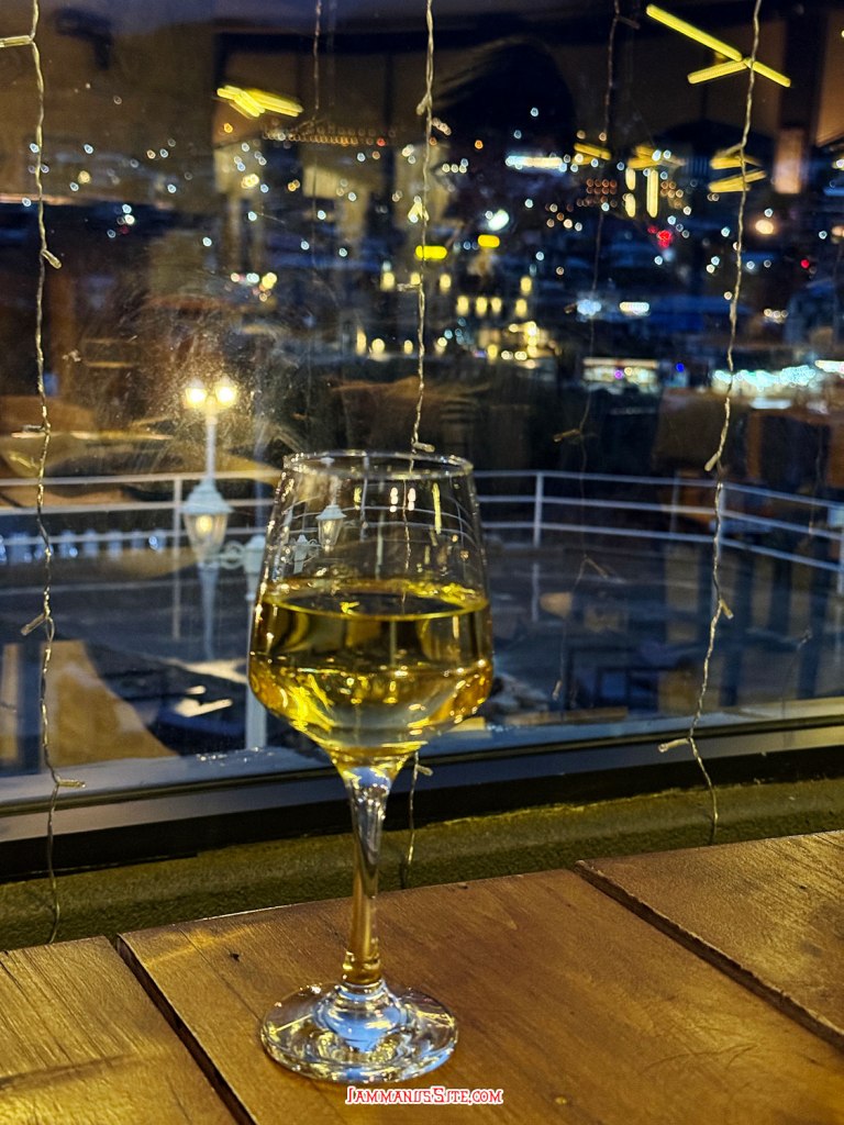 หลบฝนจิบกาแฟไปพักใหญ่ ฝนก็ยังพรำๆ ไม่รู้จะไปไหนต่อ เดินเล่นก็ไม่ไหวเลยต้องกลับที่พัก ไปนั่งจิบไวน์ดูฝนตกเปาะแปะจนเย็นย่ำ ฝนหยุด 5:30 ตามพยากรณ์เป๊ะ ก็ได้ลงไปเดินเล่นชมเมืองยามเย็น แล้วหาข้าวกินกัน