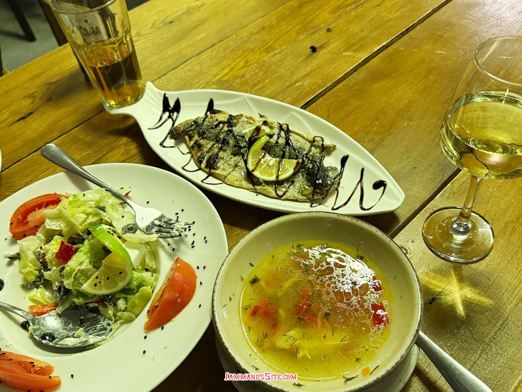 เลือกร้านนี้จากรีวิวของ IceBank แล้วไม่ผิดหวัง อาหารดี บริการดี ราคาไม่แรง และวิวน่าจะสวยตามชื่อพาโนรามา แต่เรามามืดแล้วแถมววันนี้ฟ้าปิด ใครจะมาร้านนี้มาก่อนมืดน่าจะสวยงาม จิบไวน์ไปชมวิวไปเพลินแน่นอน มื้อนี้สั่ง Greek Salad, Macaroni Soup, Trout แกล้มไวน์และเบียร์ เป็นมื้อที่ดีมาก มื้อนี้หมดไป 94GEL 1,100 บาท (ถูกกว่าอิมื้ออาหารจีนตอนกลางวันอีก คิดแล้วยังโมโหอยู่)