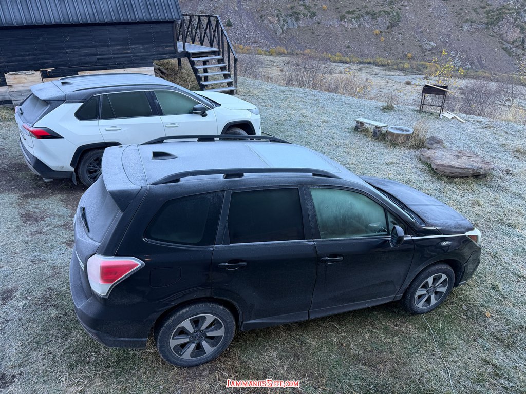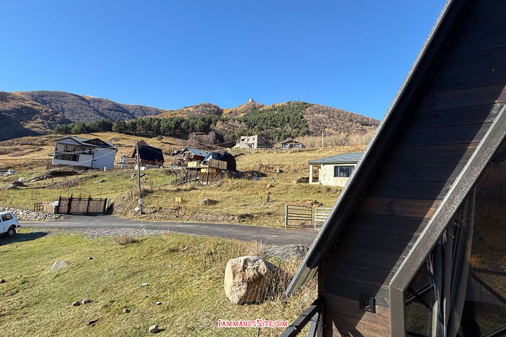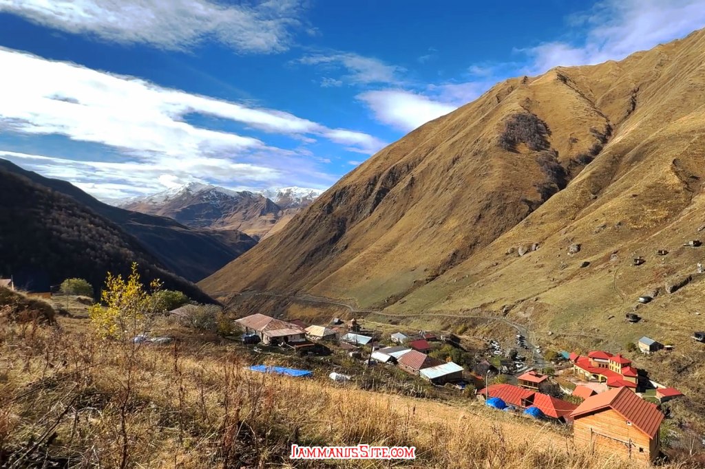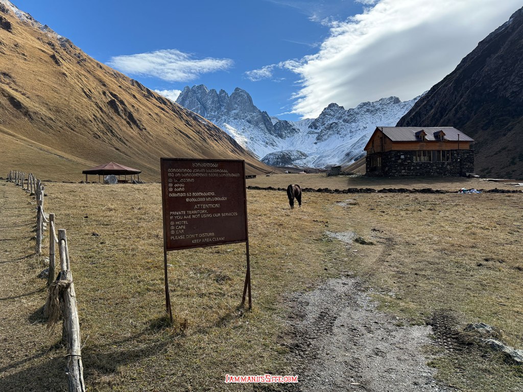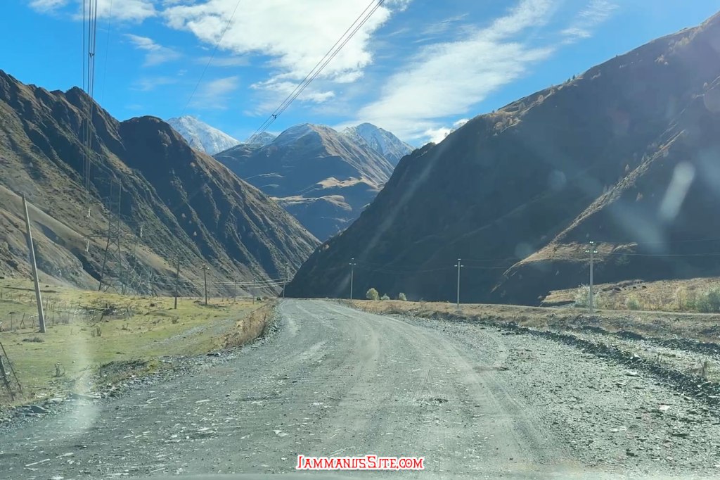 ช่วงสายๆลงจากโบสถ์ก็มาเก็บของออกเดินทาง วันนี้จะไป Juta หมู่บ้านเล็กๆที่นักเดินทางหลายคนอยากไปให้เห็นวิวอันสวยจับใจ (อารมณ์อุปทานหมู่ ต้องไปๆ เราก็ด้วยแหละ) ขับรถออกมาจาก Kazbegi 5 กม. ก็เลี้ยวซ้ายตามป้ายบอกทางไป Juta แล้วขับต่อไปอีกประมาณ 16 กม. ทางก็ไม่ได้แย่มาก จะไปแย่ก็ช่วง 1-2 กม.สุดท้ายที่หลายๆรีวิวบอกว่า เจอทางปิดไปต่อไม่ได้ต้องจอดรถแล้วเดินต่อไปตัวหมู่บ้าน บางคนบอกว่าพอเดินพ้นจุดกั้นถนนจะมีรถมาคอยรับจ้างขับไปส่งในหมู่บ้าน แต่ตอนที่เราไปโชคดีอยู่ ที่มีป้ายบอกทางปิดแต่ไม่ได้กั้นทาง ซึ่งส่วนมากเขาจะกั้นปิดเพราะมีคนทำงานก่อสร้างถนน แต่วันนี้ไม่มีคนทำงาน ไม่ได้กั้นปิดทาง ก็ขับต่อเข้าไปได้เลย ทางค่อนข้างแย่ แต่รถ SUV ขับได้สบายๆ ขับไปต่อได้ถึงตัวหมู่บ้านเลย