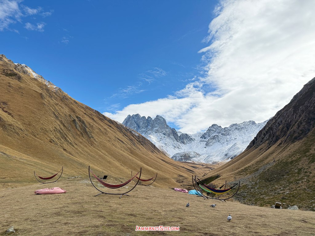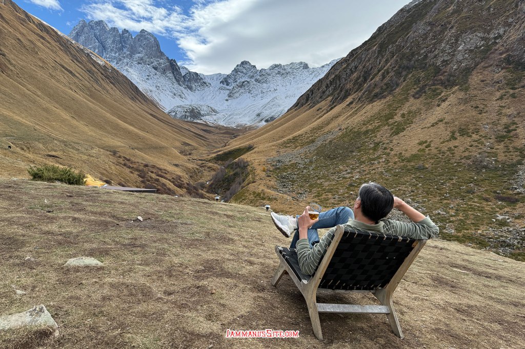 การปีนขึ้นมาถึงบนนี้ นอกจากมาชมวิวจาก Fifth season แล้ว กิจกรรมอื่นๆก็มี จาก Fifth Season มีทางเดินต่อไปทะเลสาบ Chaukhi Lake มีธรรมชาติสวยๆ เป็นเทรคกิ้งง่ายๆเดินไม่ยาก ที่เรา 2 คนไม่ไป ฮา…. เราขอแค่ กินอาหารเที่ยง แล้วนั่งเปลจิบเบียร์ชมวิวเพลินๆ แค่นี้มีความสุขแล้ว