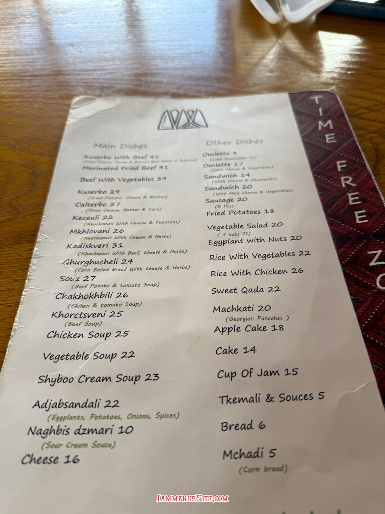 ได้เวลาอาหารกลางวันพอดี เจอร้านอาหารจอร์เจียใกล้ที่จอดรถ เป็นอาหารง่ายๆอารมณ์จอร์เจียฟาสฟู๊ด ขาย เบอร์เกอร์ เคบับ และอาหารจอร์เจียน ก็เลือกร้านนี้เลยไม่คิดมาก มื้อนี่เลยได้ลอง Khachapuri ที่เห็นตามรีวิวเยอะมาก ป้าคนทำหน้าตาแบบป้ารัสเซียตัวอ้วนใหญ่ แค่เห็นก็รู้ว่าต้องเด็ดแน่นอน