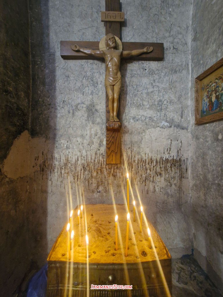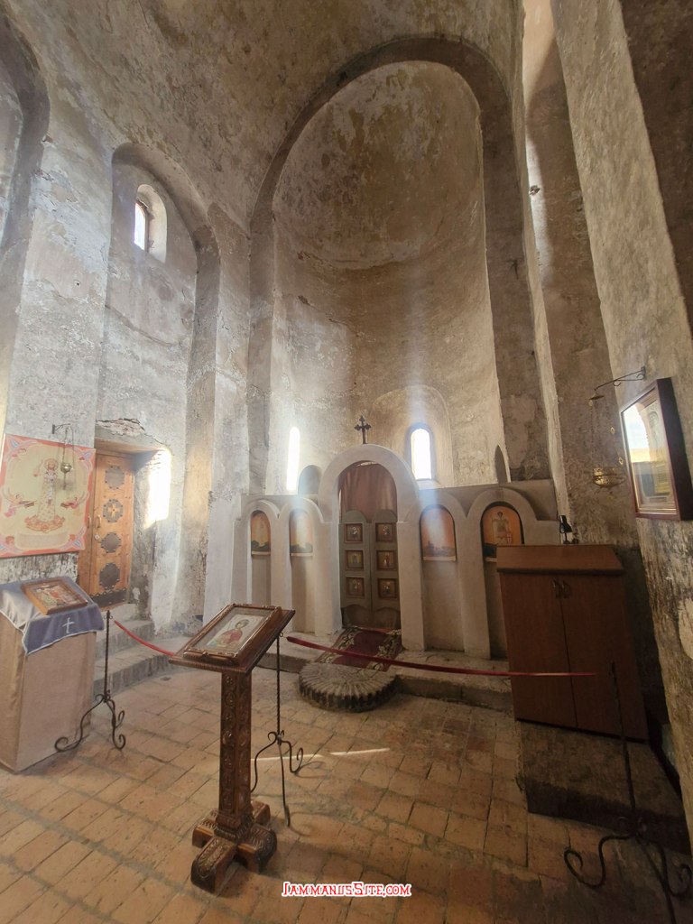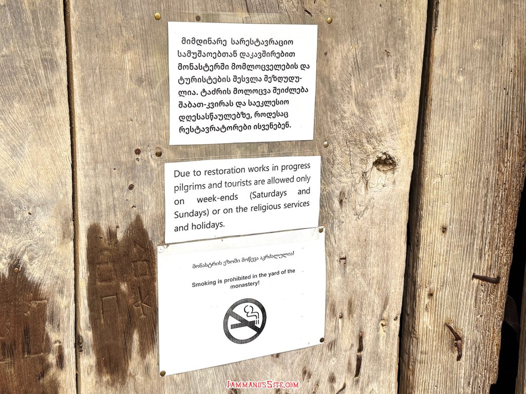 มาถึงตรงนี้แล้ว Motsameta Monastery ห่าง Gelati Monastery ไม่ไกล (ก็ขนาดมีทางลับเชื่อมถึงกันได้น่ะ) เลยขอวนไปดูหน่อย ก็ว่างๆไม่มีอะไรจะเที่ยวแล้ว ไปถึงแล้วก็ลงไปอ่านป้ายประกาศ มันบอกว่าปิดปรับปรุง แต่ว่าตัวโบสถ์ยังเปิดให้นักท่องเที่ยวและผู้แสวงบุญเข้าไปได้ เฉพาะเสาร์-อาทิตย์ และวันที่มีกิจกรรมทางศาสนา แต่เท่าที่อ่านรีวิวมา นอกจากด้านนอกที่กั้นปิดหมด ด้านในก็มีแต่นั่งร้านซ่อมแซมเต็มไปหมด