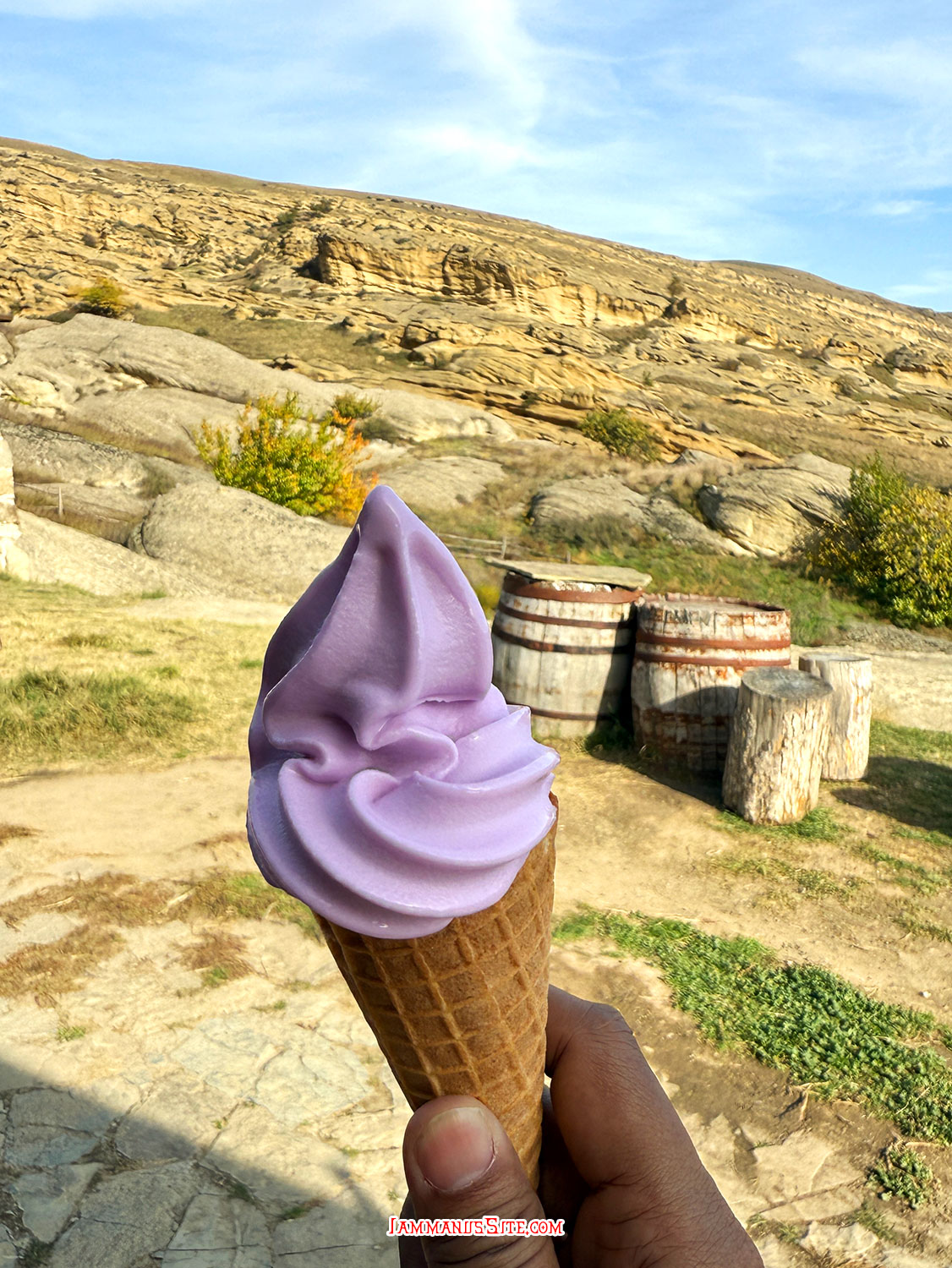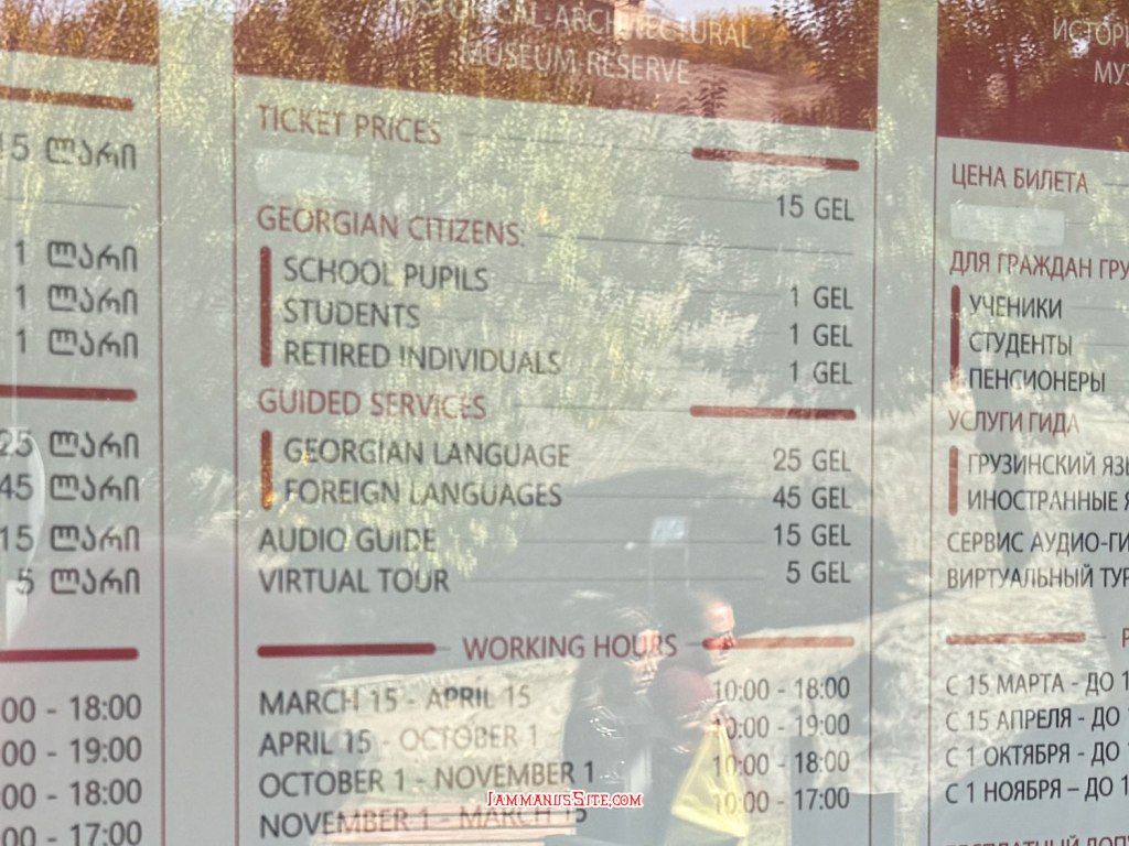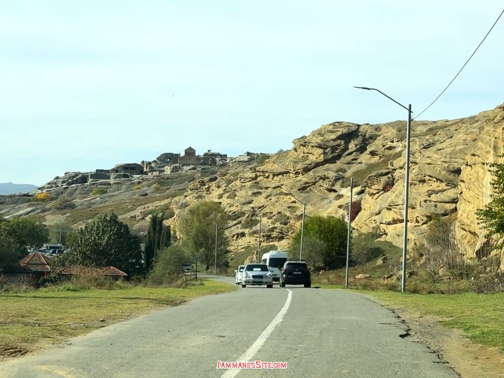 หลังมื้อเที่ยง ก็ขับรถออกนอกเมือง Gori ไปประมาณ 14 กม. เพื่อไปดูเมืองถ้ำโบราณ ที่เป็นมรดกโลกแห่งหนึ่งของจอร์เจีย เมื่อมาใกล้ถึงจะเห็นป้อมยามเพื่อเก็บค่าจอดรถราคา 10GEL! ซึ่งเราอ่านรีวิวมาแล้ว หลายคนบอกว่าจอดด้านนอกแล้วเดินมาก็ได้ พวกเราก็เลยจอดรถก่อนถึงป้อมยาม พอเดินมาใกล้ป้อมยามก็มีคนเดินมาเรียกเก็บเงินอยู่ดี พร้อมชี้ออกไปว่าจอดตรงไหนก็เก็บเงินเหมือนกันหมด ไม่แน่ใจว่าเจ้าหน้าที่หรือเปล่าเพราะไม่มีตั๋วให้ แต่คนในป้อมยามก็เห็นอยู่ก็ไม่ว่าอะไร ไม่อยากจ่ายแต่ก็ไม่อยากมีปัญหาเพราะล้อมหน้าล้อมหลังไม่ยอมให้เดินผ่านง่ายๆ ก็เลยจ่ายไปตัดปัญหา ตอนขากลับเห็นฝรั่งบางคนไม่ยอมจ่ายก็โดนเดินตามโวยวายกันไปตลอดทาง ไม่รู้ว่าจบยังไง แต่เก็บค่าจอดแพงมาก (น่าจะรู้แกว เพราะคนบอกต่อๆกันให้จอดด้านนอก เลยมาดักไล่เก็บเงินด้านนอกด้วย)