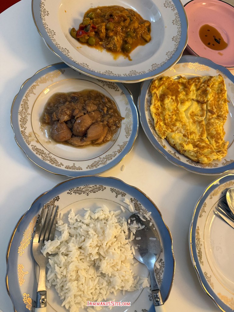 มื้อนี้มีไก่กระเทียมพริกไทย แกงเผ็ดปลาซาดีน แล้วทอดไข่เจียวอีก 1 จาน (ไข่ไก่มาซื้อที่นี่ 1 แพ็คเลย ทำอาหารได้ทุกมื้อ) ข้าวสวยแพ็คเอามาอุ่นปุ๊บ กินได้เลย อิ่มแล้วมื้อนี้ก็เปิดเบียร์เปิดไวน์แกล้มทาโร่อบกรอบ (ทาโร่เอามาด้วยค่ะ พกไว้กันหิว แต่เอาทำกับแกล้มก่อน ฮา…)