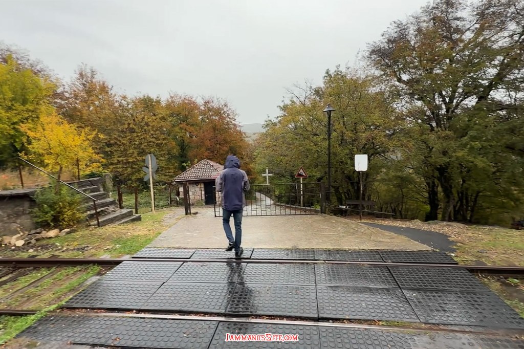 ขับขึ้นไปตาม GPS จนสุดทาง ที่ลานจอดรถมีรถจอดอยู่แค่คันเดียว Google map บอกว่าต้องเดินต่อไปอีก 400 ม. ข้ามทางรถไฟไป ฝนยังลงปรอยๆตลอด ก็ใส่เสื้อฮู๊ดเดินกันไป ฝนลงปรอยๆ อากาศชื้นๆเย็นๆ ว่าไปก็บรรยากาศดีไปอีกแบบ มีเมฆลอยตามยอดเขา