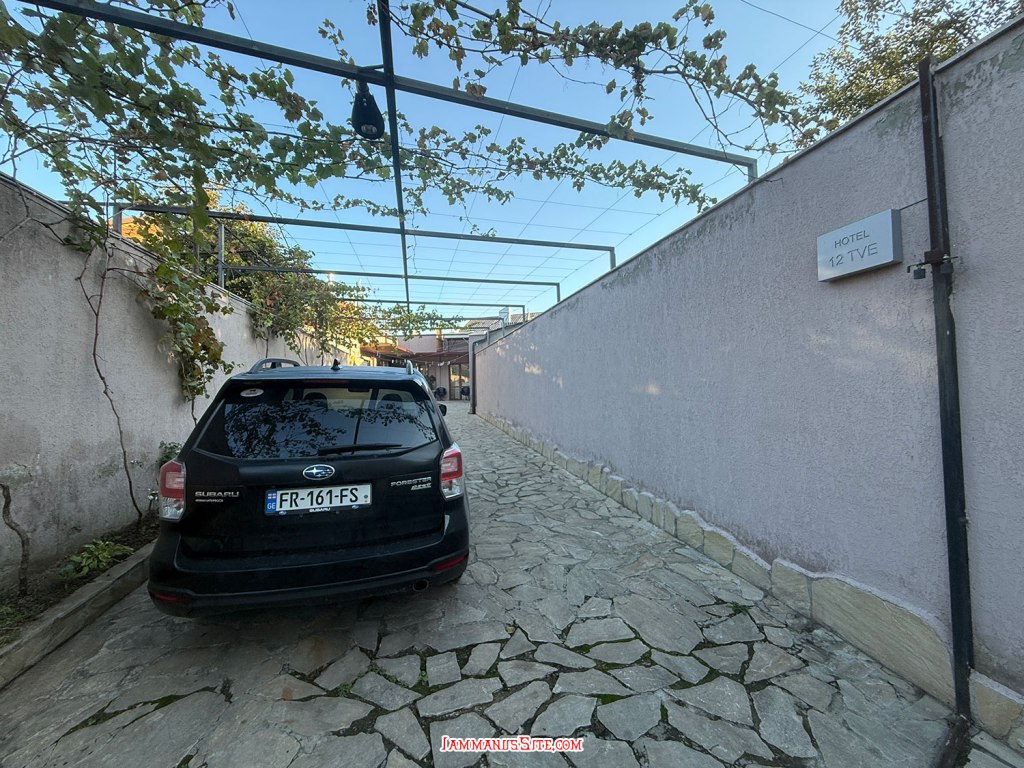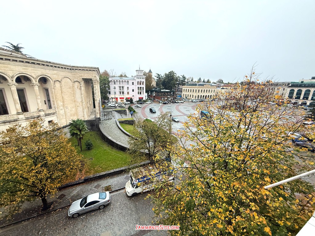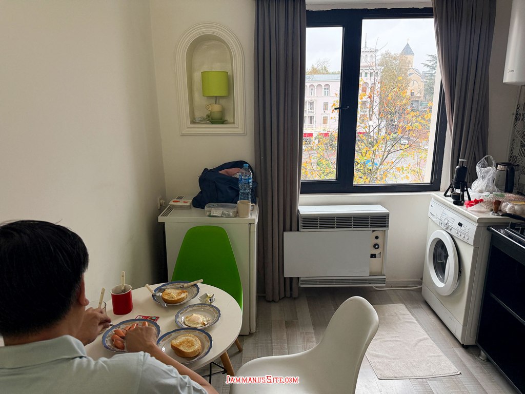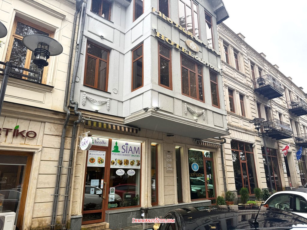 เลือกโรงแรมนี้จากทำเลที่อยู่ใกล้วงเวียนน้ำพุ Colchis Fountain จะได้จอดรถแล้วเดินเล่นได้เลย เพราะเป็นย่านที่เดินเที่ยวของเมืองเลย ปัญหาของที่พักแบบอพาตเมนต์คือ หายาก ต้องติดต่อเจ้าของและนัดหมายดีๆ เจ้าของห้องนี้ดีมาก พอกดจองปุ๊บ ทัก WhatApp มาทันทีเลย และใกล้วันเข้าพักก็ทักมาอีก ถามตลอดว่าจะมาถึงกี่โมง ส่งรูป ส่งคลิป มาให้ดูว่าอยู่ตรงนี้นะ แต่ดีขนาดนี้แล้วก็ยังต้องวนรถ 2 รอบ เพราะหาที่จอดไม่ได้เลย พอทักบอกไปว่าหาที่จอดไม่ได้ ป้าแกบอกว่า มีลานจอดรถของที่พัก แต่เธอต้องมาเจอฉันก่อน เดี๋ยวฉันพาไปเพราะมันต้องใช้รีโมทกดเปิด ก็ทุลักทุเลนิดหน่อยกว่าจะได้เจอกัน แล้วก็พาไปดูลานจอด ที่ความจริงเราวนไปตรงนั้นแล้ว เจอไม้กั้นปิด ก็เลยวนออกมาหาที่จอดริมถนน ที่แท้มันเป็นที่จอดของตึกที่พักนั่นเอง
