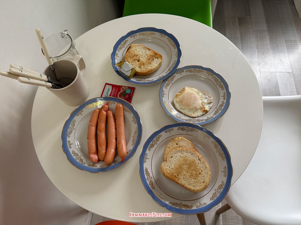 อุปสรรคอีกอย่างคือ ป้าเจ้าของพูดอังกฤษไม่ได้เลย ต้องคุยกันผ่านแอปแปลภาษา ก็ทุลักทุเลหน่อย แต่ที่ทุลักทุเลขั้นสุดคือ ห้องพักอยู่ชั้น 5 และตึกเก่ายุคโซเวียตไม่มีลิฟต์ ก็เลยไม่สามารถแบกกระเป๋าขึ้นไปไหว อาศัยเปิดท้ายรถหยิบข้าวของใส่กระเป๋าเล็กขึ้นไปทีละวัน อยากได้อะไรเพิ่มต้องเดินลงบันได 5 ชั้นมาเอา ลำบากลำบนพอสมควร แต่ห้องพักก็กว้างใหญ่ สะดวกสบายดี ถามป้าว่าฮีตเตอร์ใช้ได้มั๊ย ป้าพยายามเปิดอยู่แต่เปิดไม่ติด สุดท้ายป้าหันมาทำมือทำไม้บอกว่า ไม่หนาวๆ ไม่ต้องใช้หรอก ฮา… แต่ก็ไม่หนาวขนาดนั้นจริงๆ ห้องอุ่นดีใช้ได้ มีครัว มีตู้เย็น เครื่องซักผ้า แต่เครื่องครัวป้าน้อยไปนิด คือไม่ขาดโน่นก็ขาดนี่ ทำกับข้าวยากไปหน่อย ห้องน้ำไม่ได้ใหม่มาก แคบแต่ก็สะอาด น้ำอุ่นดี แต่ไม่มีอุปกรณ์อาบน้ำให้เลยนะ wifi ก็ใช้ได้ดี ใครชอบพักแบบอพาตเมนต์ก็ถือว่าใช้ได้ แต่ต้องเดินขึ้นๆลงๆบันได 5 ชั้นเอาหน่อย